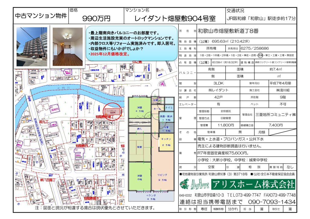 和歌山県和歌山市畑屋敷新道丁 レイダント畑屋敷 |